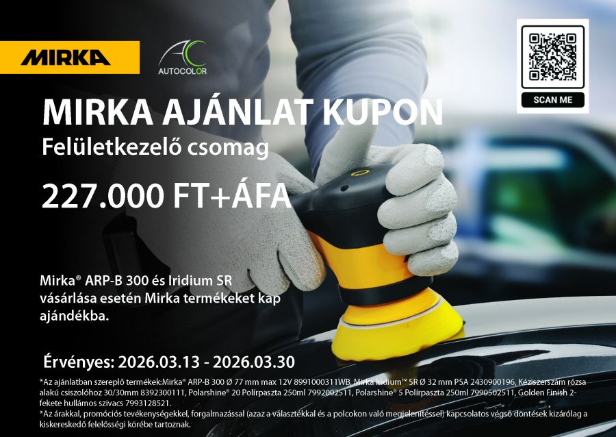 A Mirka® ARP-B 300 szénkefe nélküli motorral és 77 mm-es tányérral rendelkezik. A szabályozható sebességnek köszönhetően tökéletesen kontrollálhatja a polírozási folyamatot anélkül, hogy a felületet összefröcskölné vagy megégetné.