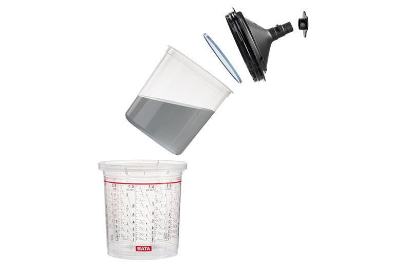 Ahogy az RPS, ez a tartály is minden SATA pisztolyhoz használható adapter nélkül. Más gyártók szórópisztolyaihoz találsz hozzá adaptert is. Plusz, még több előnyt kapsz vele: jobb súlyelosztás, egyszerűbb tisztítás, kisebb tömeg és kevesebb sérülés a szórópisztolyon.
